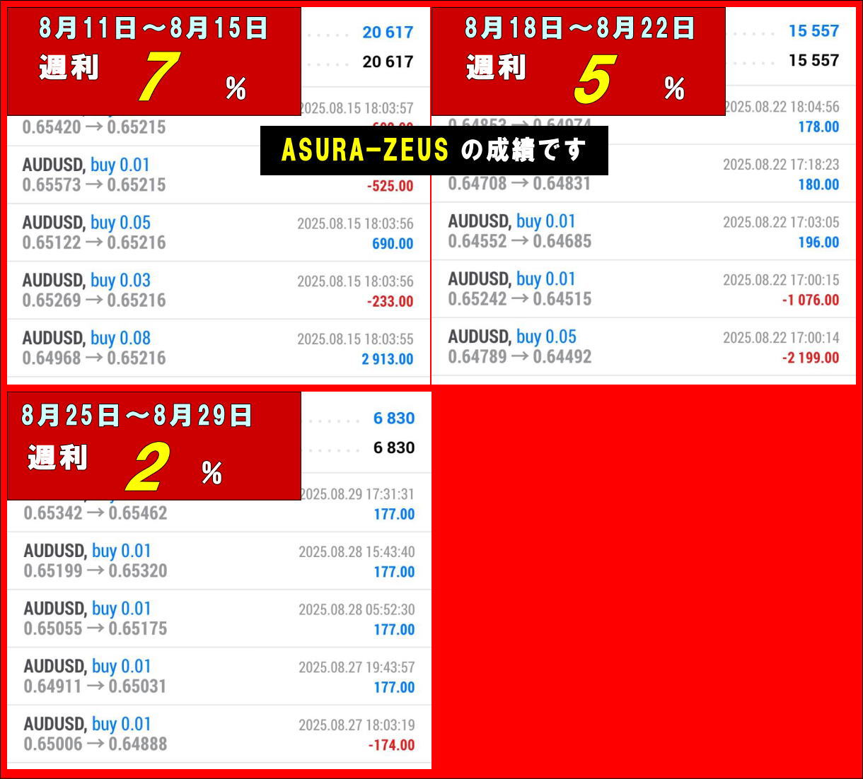 ASURA-ZEUS | ASURA-GをAUDUSDで稼働させたもの XM|スタンダード/マイクロ|30万円0.01/3,000円0.01~ |