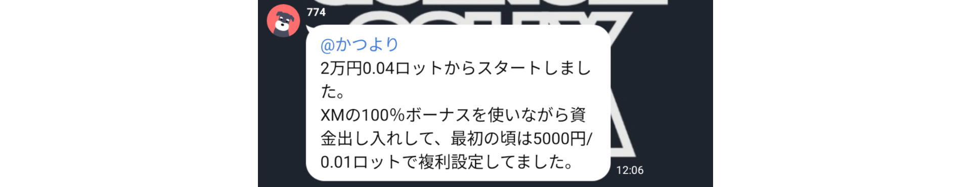 オープンチャットで書いてくれたこの方の場合、2万円スタート1年後120万 ですから、