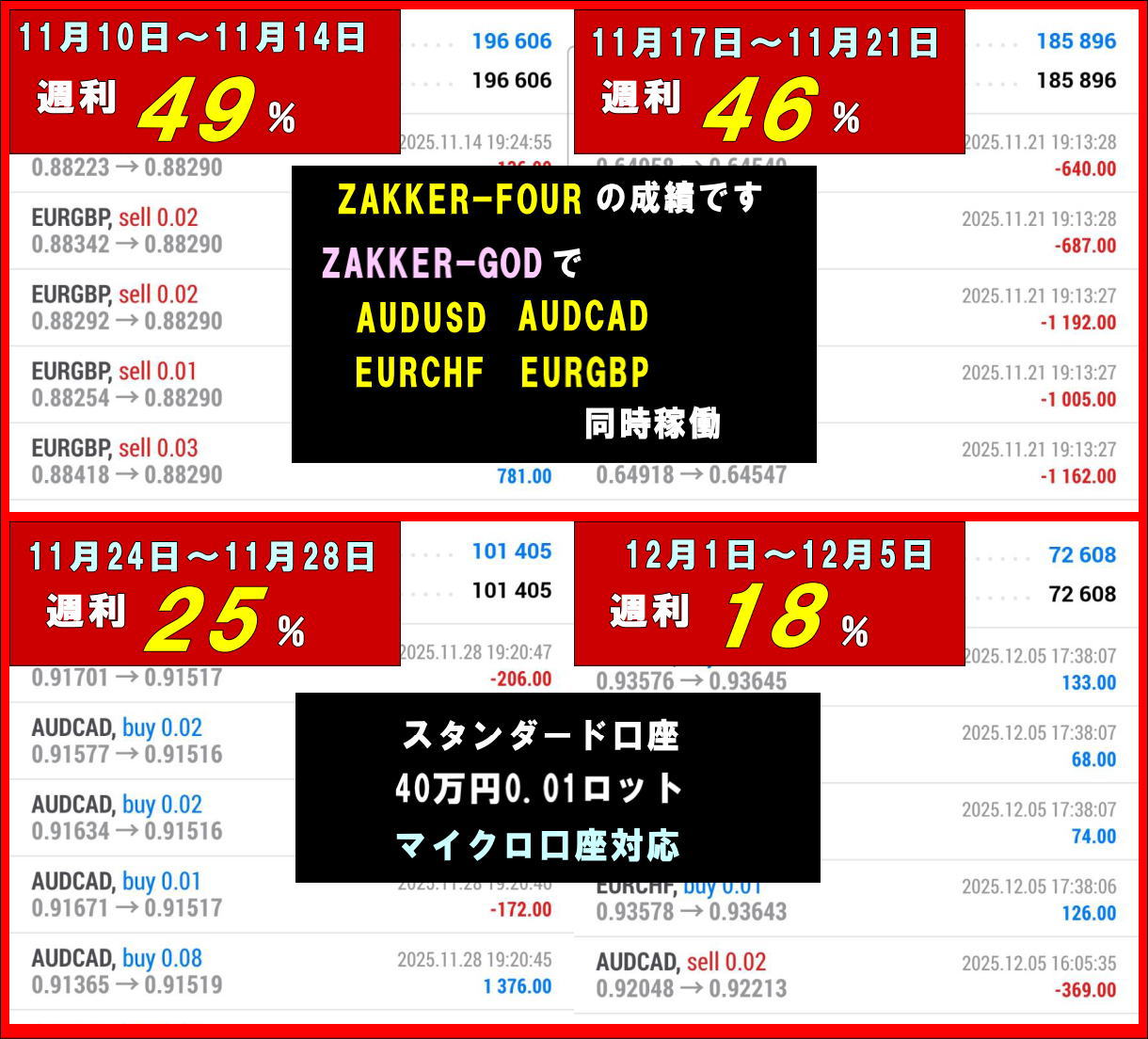 4通貨ペア同時稼働「ZAKKER-FOUR」